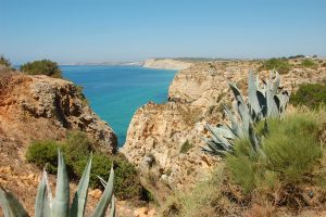 Route Met rug naar ingang kerk (1) RD naar weg lopen. Hier LA en met weg mee naar links. Daarna via promenade met palmbomen naar strand lopen. RD over strand tot aan de laatste weg die bij het strand uitkomt vóór de klif (GPS: 0524435/4104570 = punt Y op de kaart). Verlaat via deze weg het strand. Steeds RD omhoog. Na 400 m waar weg eindigt bij hek van woning, RA landweg (GPS:0524727/4104850 = punt Z op de kaart). Vanaf hier RD en steil omhoog klif op naar geodetisch punt (obelisk): Atalaia. Hier RA. Volg vanaf hier landweg langs klifrand (2) tot strand bij Porto de Mós (ong.3 km). Hier houdt landweg op. Over parkeerplaats RD en via asfaltweg omhoog. Eerste straat RA (Caminho Velho). Daarna eerste LA (Rua das Urzes). Doorlopen tot Travessa das Urzes (eerste afslag aan linkerhand). Hier tegenover RA ‘trappetje’ op en straat inlopen (Travessa do Canavial). Steeds RD tot T-splitsing. Hier LA. Aan eind RD pad in. Even later splitsing. Hier links aanhouden en langs muur (aan linkerhand) blijven lopen. Even later T-splitsing. Hier RA. Vanaf hier via paadjes langs klifrand met oceaan aan rechterhand naar vuurtoren bij Ponta da Piedade (3) (na ruim 1 km). Vanaf hier zelfde weg terug.