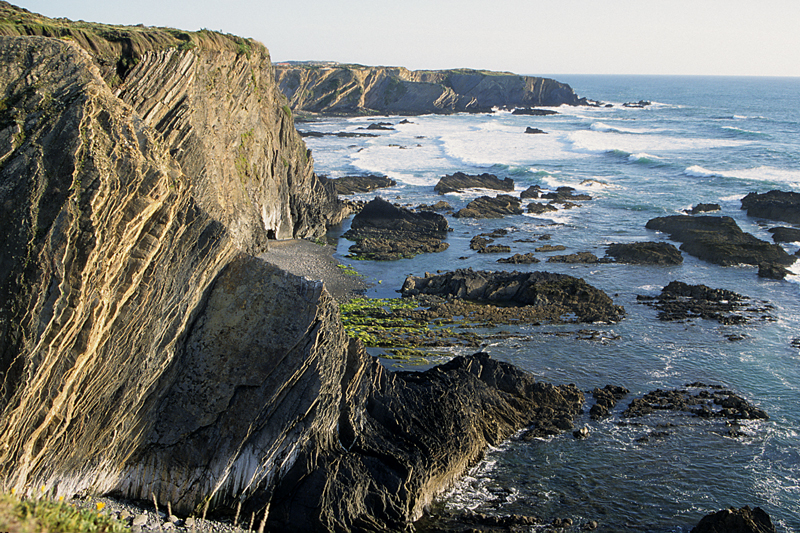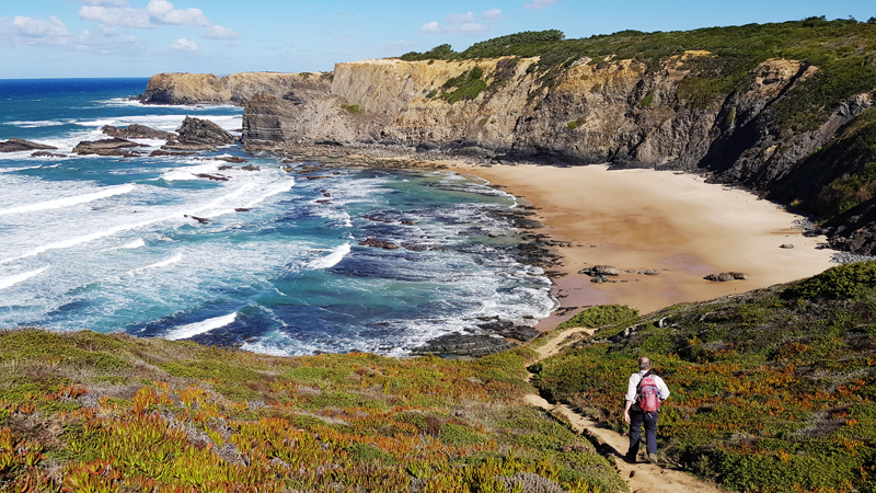 De ruige klifkust van de Alentejo is ronduit schitterend. Intieme strandjes liggen er verscholen tussen rotswanden. In de baaien maken vissers hun bootjes klaar. Ze gaan voor sardines en inktvis, maar hopen op zwaardvis. Op eenzame rotspunten in zee nestelen ooievaars, uniek in de wereld. Duinen liggen hoog op de kliffen, sommige rood van de ijzeroxide. We volgen de mooiste stukken van het Visserspad  (Trilho dos Pescadores), een populaire lange-afstandswandeling. Verder naar het noorden vinden we brede stranden, lagunes, rijstvelden en het bijzondere haventje van Carrasqueira.