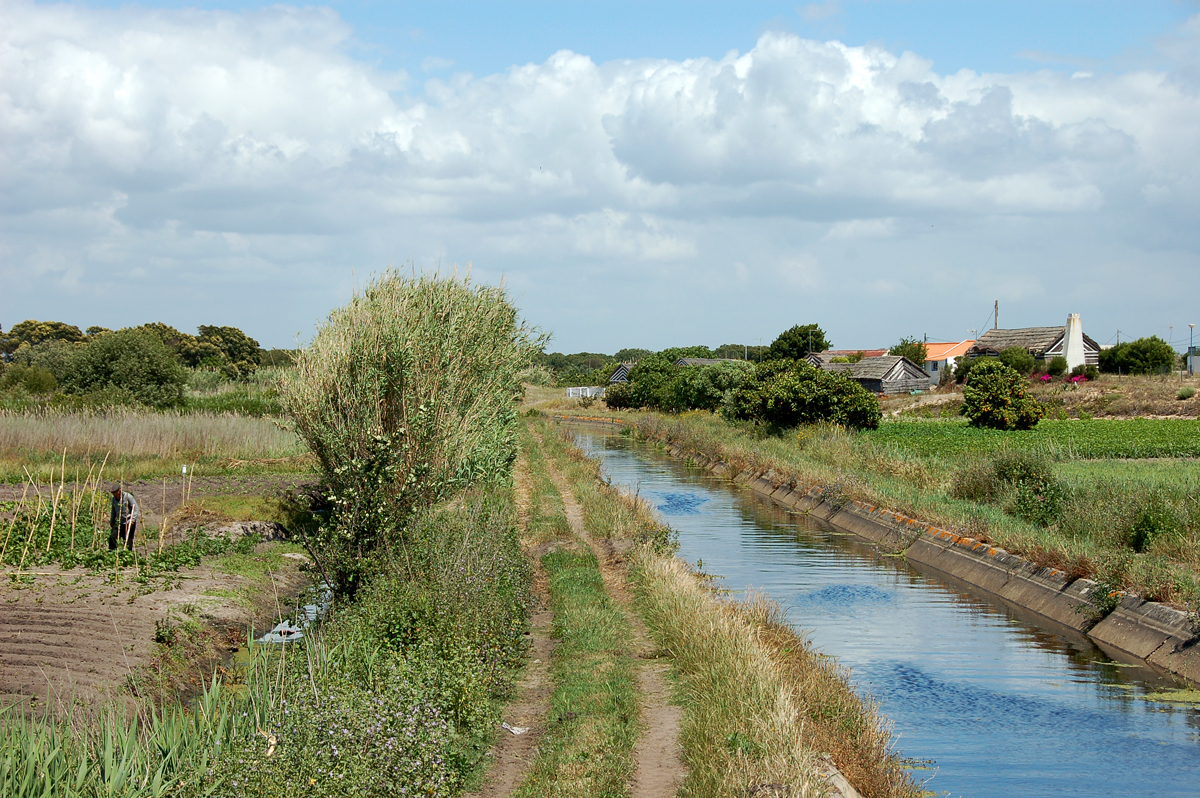 Vegetatie Door de open verbinding met de oceaan is het zoutgehalte van het water in het estuarium hoog. Er groeien dan ook veel zogenaamde halofyten, planten die goed bestand zijn tegen zout. Op slikken die bij vloed onderlopen groeit kortarige zeekraal. Op de schorren die af en toe onderlopen groeien zoutmelde, strandmelde, lamsoor, gewoon kweldergras, heen, baardgras, klein schorrekruid en de parasiet Cistanche phelypaea. Op plaatsen waar het water minder snel stroomt groeit riet, lisdodde, naaldgras en mattenbies. Een groot deel van het reservaat bestaat uit geïrrigeerd cultuurland. Men verbouwd er vooral rijst en maïs. Op de hogere delen aan de randen van het reservaat liggen dennenbossen (zee- en parasoldennen) afgewisseld met eucalyptussen en kurkeiken.