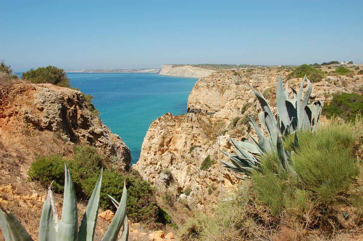 3. De kuststrook vanaf Ponta da Piedade tot bij Albufeira bestaat uit zacht gesteente dat gemakkelijk erodeert onder invloed van water en wind. Het gesteente is relatief jong (20 – 5 miljoen jaar) en bestaat vooral uit grofkorrelig kalksteen (calcareniet en siltsteen).