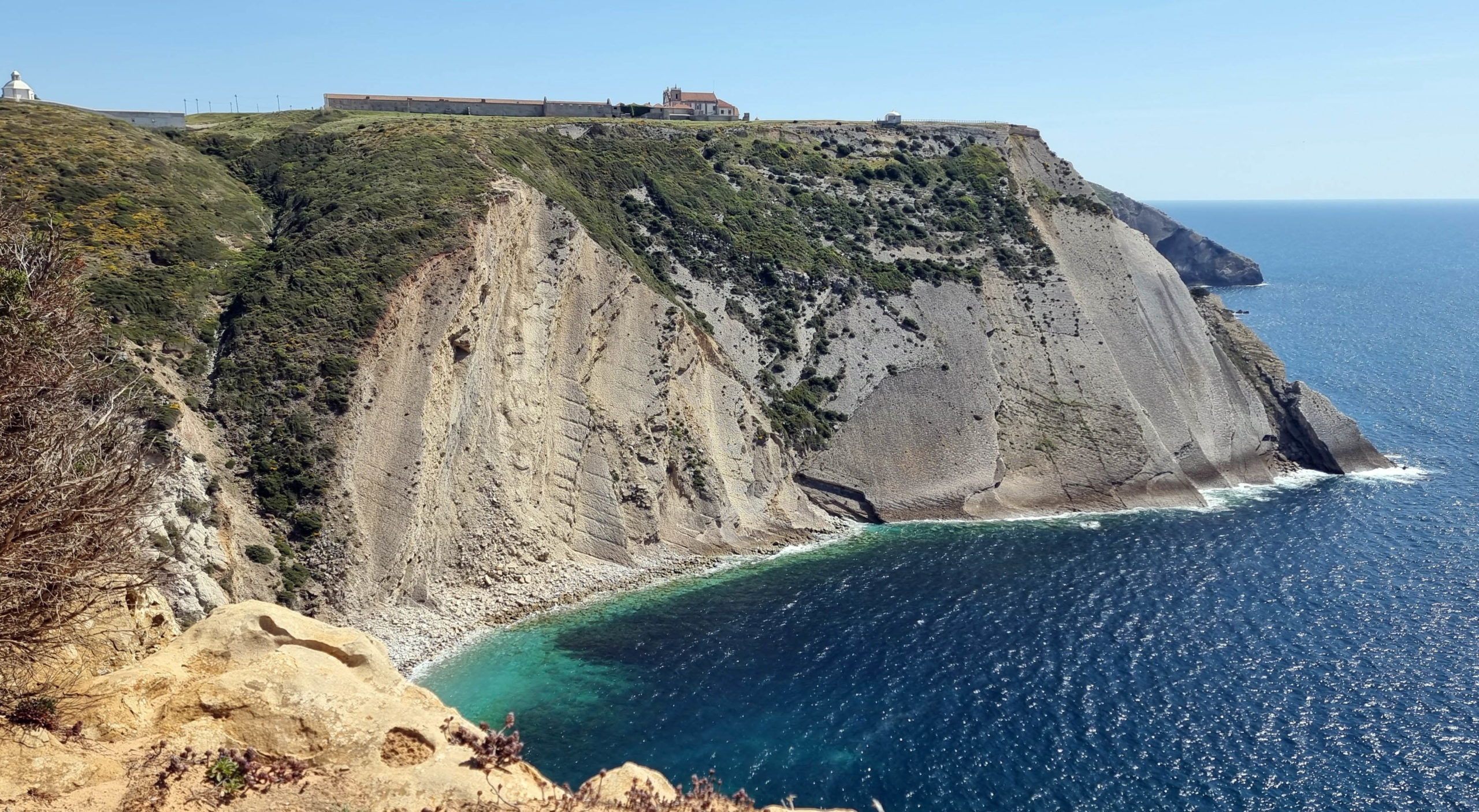 Bedevaartsoord op Cabo Espichel Bij Cabo Espichel, loopt u hoog over ruige kliffen met onderweg een bedevaartsoord, de ruïnes van een fort en pootafdrukken van dinosaurussen. Routebeschrijving, gps-track en achtergrondverhaal zijn te vinden in de wandelgids: Lissabon en omgeving – 26 wandelingen