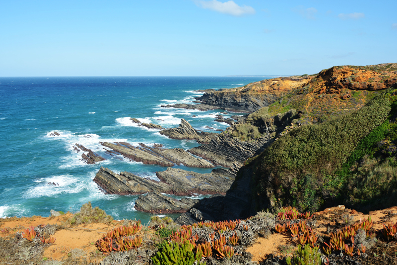 Deze wandeling langs de ruige klifkust, soms rood van de ijzeroxide, is ronduit schitterend. U loopt naar een intiem vissershaventje verscholen tussen de rotswanden. De route loopt over het Visserspad van de Rota Vicentina.