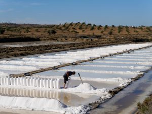 Enkele kilometers voor de monding wijken de heuvels en stroomt de Guadiana door laagland. Hier vormde zich een drassig gebied waar de getijden grote invloed hebben. Bij vloed stroomt zout water het moeras in. Dit, gecombineerd met de vele uren zonneschijn, maakte het een ideale plek voor de winning van zeezout. Vanaf het kasteel van Castro Marim en het vlak daarbij gelegen gelegen fort São Sebastião heeft u een prachtig uitzicht: zoutmoerassen, zoutpannen en kreekjes omringd door heuvels met boomgaarden. Het krioelt er van de waadvogels.